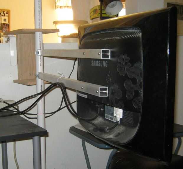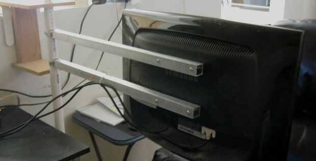 Problema: Así que puse todos juntos. Desafortunadamente, el peso del monitor en el brazo largo había deformado el PVC y el monitor cedió.
