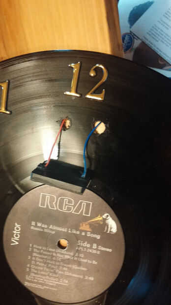 • A continuación, haga dos orificios en la cara del reloj a los cables de la célula de energía a través de la alimentación en la parte posterior. Usé un taladro para perforar los agujeros cerca de la marca de 12:00.