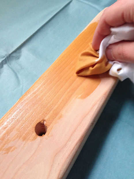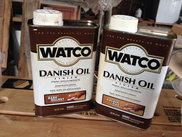 Una vez completado, es hora de soporte o acabado de la madera. Siento que deliran sobre Aceite danés en cada Instructable autor, pero es tan fácil de trabajar y nunca he conocido una mancha que ha dado resultado con que he sido más feliz. Siento que las manchas más ocultan el grano de madera natural de sus materiales, pero danés aceite realmente lo hace brillar y le da carácter. Opté por usar dos colores diferentes para dar las placas de la pierna y estantes superior e inferior ligeramente diferente se ve, pero la diferencia en color fue leve. Han elegido unos tonos muy contrastantes más retrospectivamente. Lo que usted decide, si es solo mancha solo acabado o ambas cosas, que estamos casi listos.