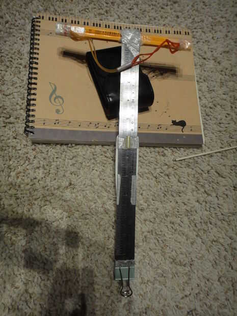 Paso 2: Con cinta adhesiva dos lápices en la parte superior de la regla para que sean perpendiculares a cada uno