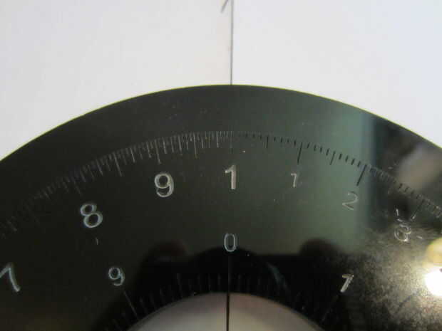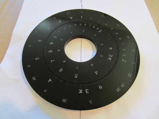 Ahora tendrás pegamento el anillo interior del lado 1 al otro lado del anillo interior del sándwich. Sin embargo, necesita asegurarse de que los dos lados estén alineados correctamente. Toma una hoja de papel y trazar una línea recta con una regla a través de él. Doble hacia abajo de esta línea y cinta adhesiva en el anillo interno del lado 2, asegurándose de que atraviesan con la línea marcada. Ahora, encontrar el lado de la bisecado del círculo que tiene el índice en ambos el / escalan escala B y la K. Se trata de donde línea de dos 1. Poner una pequeña flecha en la pauta aquí, así que ya sabéis que forma el índice debe ir en el otro lado. Ahora voltea todo, desplegando el papel al mismo tiempo.