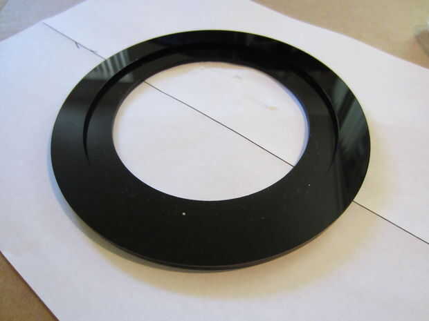 En primer lugar, tomar el más grande de las piezas de sandwich y cuidadosamente pegamento que el anillo externo del lado 2 (con la A / B escala). Es muy importante que los anillos estén al ras todo el camino alrededor. Luego tomar el anillo interno del lado 2 y pegamento para el anillo interior de las piezas de sandwich, asegurándose de que el interior quede a ras.