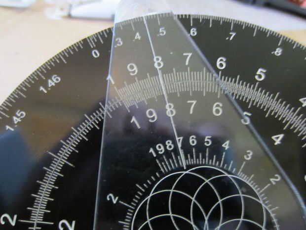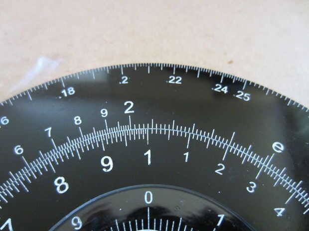 * Lea la respuesta en la escala exterior de C/D. En este caso, parece que se acerca 0.777.