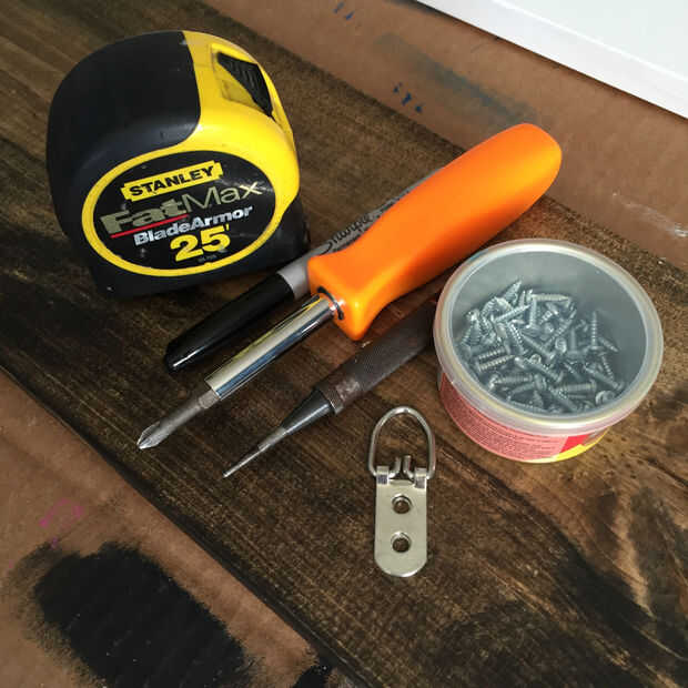 Utilice un destornillador para sujetar el gancho D, luego colgar la regla. Si se dispone de una viga, es una gran opción, pero si no, las placas suelen ser entre 6-9 libras, así que un anclaje de paneles de yeso hará el truco.