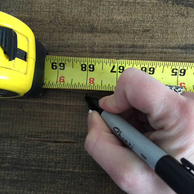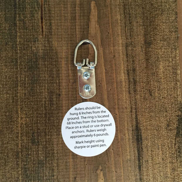 Tendrás que colgar su regla 6" de la tierra (corte unas pocas pulgadas de la parte inferior si sus zócalos son más altos que 6"). Utilice una cinta métrica para marcar 68" de la parte inferior; Esto es donde colgar su regla de. Medición donde se coloque el gancho D en la espalda ayuda con exactitud en el proceso de suspensión. No tiene que ser en el 68", basta con saber donde es asegurar que está colgando a la altura correcta.