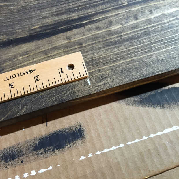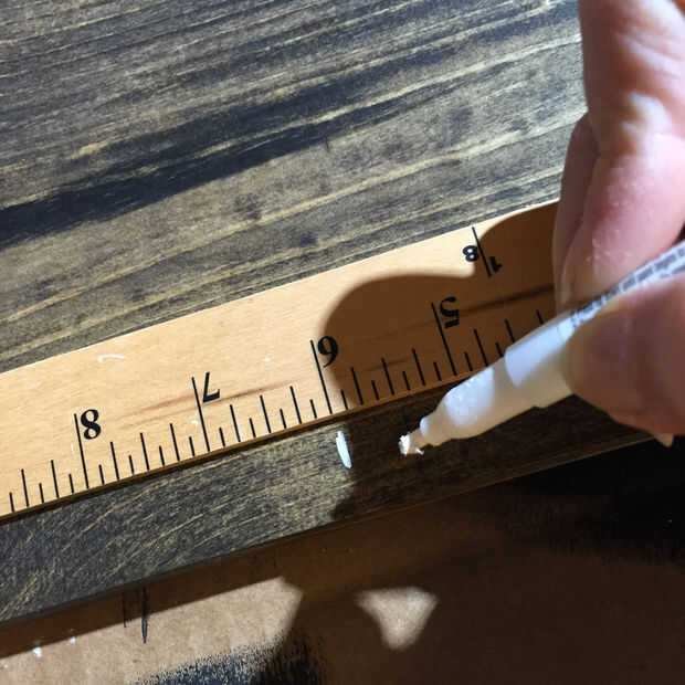 Necesitarás un palillo de la yarda o una cinta métrica para hacerlo mejor. Alinee el palillo de la yarda con el tablero y poner una línea en la marca de 6". Luego mueva el palo para esa marca, nivel hacia fuera y proceda a marcar en el 12", 24", 36". Moverlo hacia arriba otra vez en el pasado y marca de nuevo en 12", 24" y 25". Se utilizará estas marcas para alinear las plantillas.