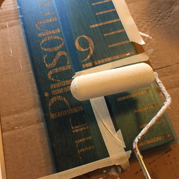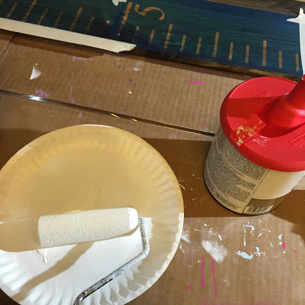 Usted querrá usar un rodillo si es posible. Yo uso los 4" puerta y gabinete de rodillos porque dejan un acabado suave agradable. Asegúrese de dejar que la pintura seca entre las capas. Una vez termines con todas las manos, dejar la regla para que se seque por lo menos 8 horas, pero 24 es recomendable, antes de la plantilla.