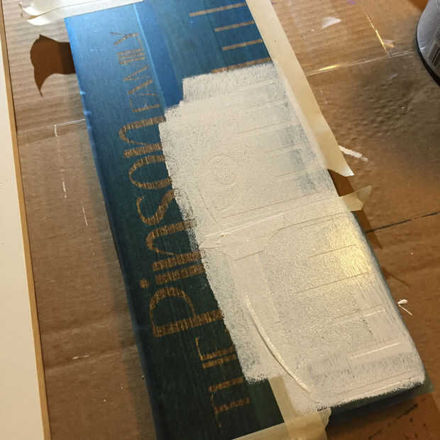 Si han pintado la board, tendrás tu primera capa sobre la plantilla para ser del mismo color que el tablero. Esto previene el sangrado que se produzca. Una vez seca esa capa, proceder con cualquier color usted desea sus marcas a ser.