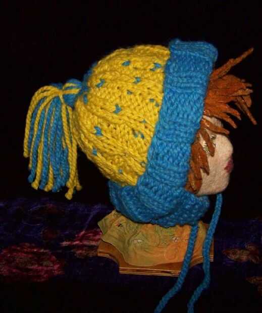 Punto azul y amarillo sombrero del oído de la aleta (lana lavado fácil)