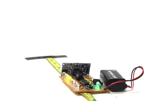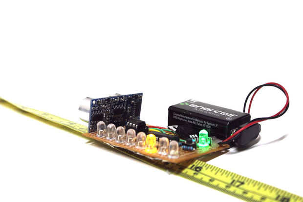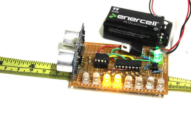 Antes que pensar en una aplicación final de nuestro circuito de soldadura, permite asegurarse de que es exacta. Para medir, grabó una cinta métrica a la tierra y comprueba si el número de la regla ultrasónico adaptado los valores de la cinta métrica. Tenga en cuenta, la regla puede estar desfazado por + o - a un centímetro. Pero esto se espera, así que no preocuparse.