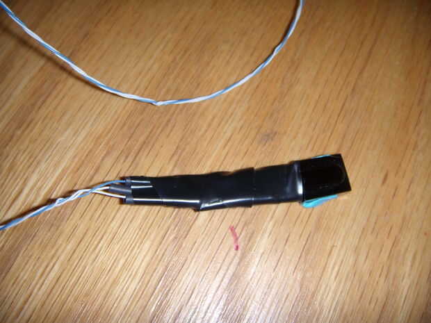 En orden para el receptor de IR ser "visto" por el mando a distancia obviamente debe ser visible y no escondido debajo de su mesa o escritorio. Este es el cable de la envoltura aislante. Conecte unos 4 pies de alambre cada uno en el receptor IR y girar alrededor hasta que se forme un cable de señal simple. Esto hizo mucho más fácil colgar una llave o algo pesado en el extremo de los cables y spinning alrededor. Asegúrese de mantener un registro de cual cable es cual antes girando por lo que correctamente puede enganchar después de su hecho.