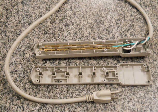Mi regleta se llevó a cabo conjuntamente por cuatro pequeños tornillos en la parte inferior, uno en cada esquina. Tomar éstos hacia fuera y suavemente palanca aparte el plástico superior inferior, para que pueda obtener en las entrañas eléctricas.