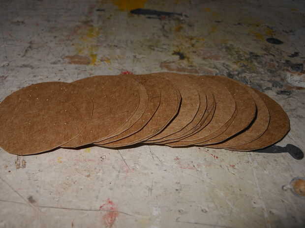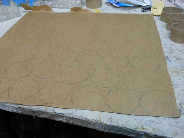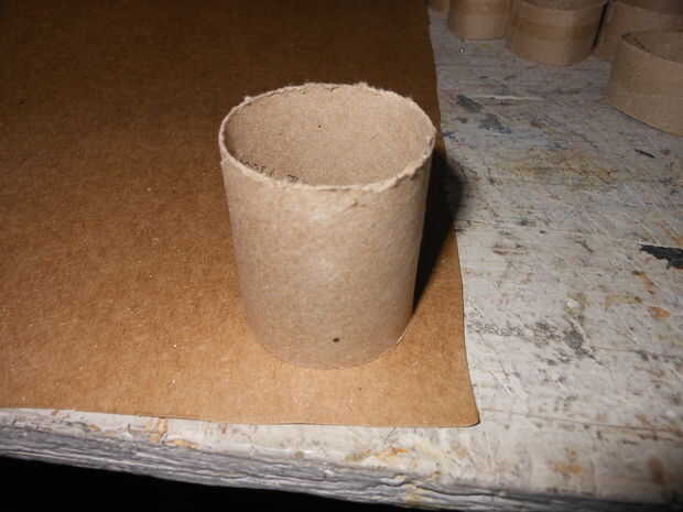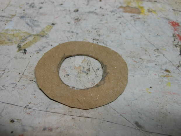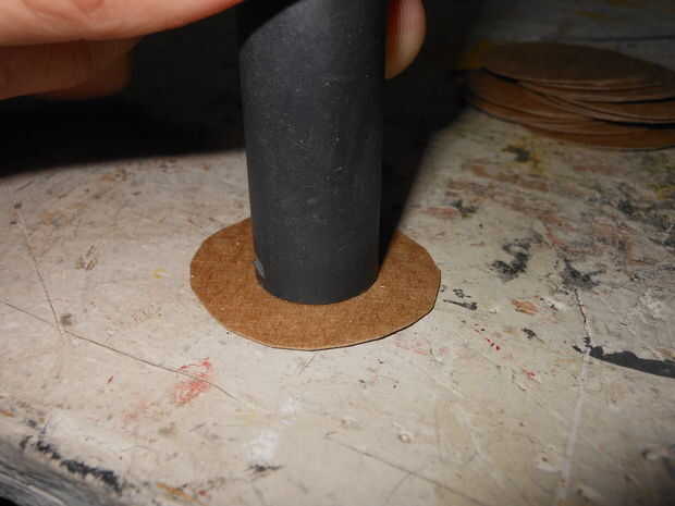 Utilizando el papel higiénico del rodillo como el diámetro exterior y el tubo de plástico de una luz del jardín como el diámetro, cortar varias arandelas de cartón.