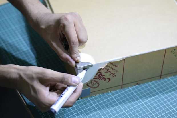 Vamos a empezar con la construcción de la caja para el condensador de flujo. Las dimensiones que he elegido son 12 "x 14" x 4 ". Para la construcción primero tenemos que marcar n ' snap los laterales de nuestra caja.