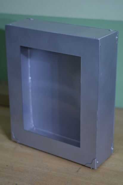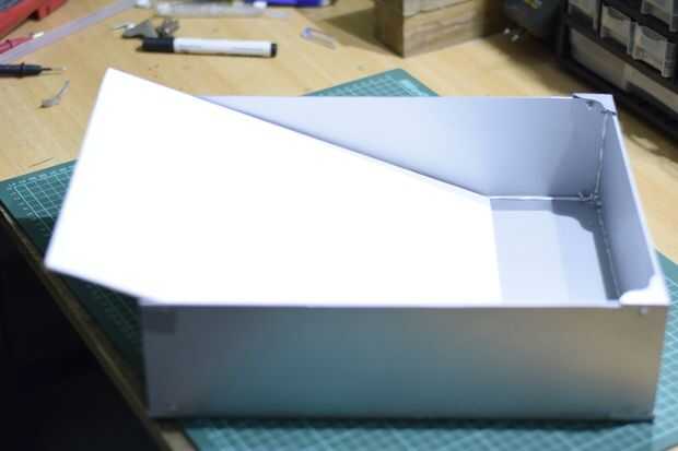 La pieza interior, medir las medidas internas de la caja y luego cortar el interior un poco más pequeño que las dimensiones reales. Asegúrese de que cabe. Luego rocíe pintarlo negro.