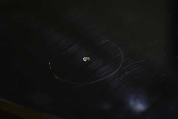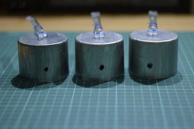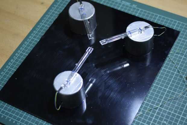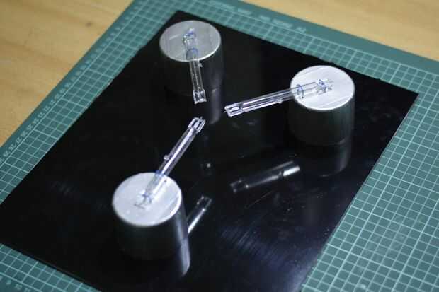 Ahora tenemos que medir y marcar la posición de los soportes en la placa base negra. Pueden variar para usted pero lo que hice fue marcar las dos superiores, equidistantes de los lados. Luego coloqué la tercera que las varillas convergen uniformemente y marcan los puntos de los tres. Básicamente se debe tener aspecto limpio y uniforme.