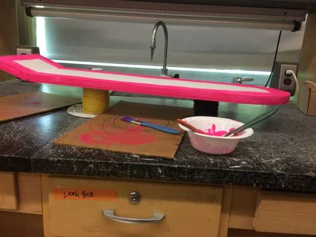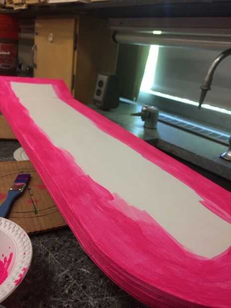 Tomar la pintura de acrílico color rosa brillante y pintar los bordes y un poco dentro de la Junta, asegúrese de que pinte lo suficiente en que el diseño lo cubrirá. Hacer unos abrigos para que realmente aparece.