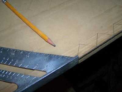 utilicé un cuadrado de la velocidad para marcar la pieza recién thicknessed por lo que podía cortar en triángulos en mi sierra.