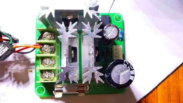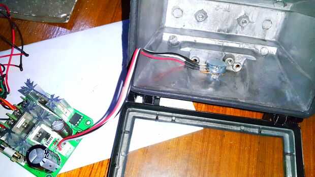 El potenciómetro para variar la salida de pwm que se había instalado en el caso a través de un agujero que había perforado.