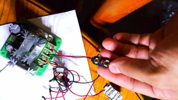 Utiliza un controlador pwm para atenuar los leds. Este controlador se coloca entre la batería y los controladores led. Aquí está todo conectado para asegurarse de que el regulador pwm está funcionando como debería.