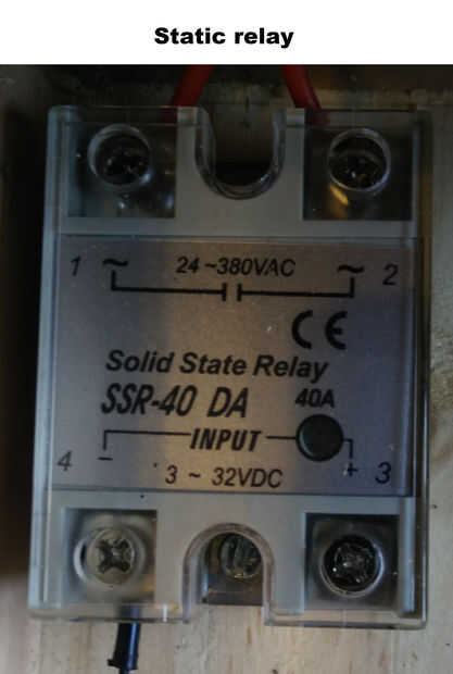 Nuestro actuador principal es la resistencia de calefacción controlada por un relé estático. Este relé estático nos permite encender y apagar una fuente de alimentación de CA, con una señal de bajo voltaje de CC: la señal de bajo voltaje de CC proviene de Arduino, y la fuente de alimentación es la resistencia. La modulación de la potencia se hace cambiando el ciclo de trabajo de la señal de bajo voltaje de CC: esta modulación es realizada por el programa de Arduino.