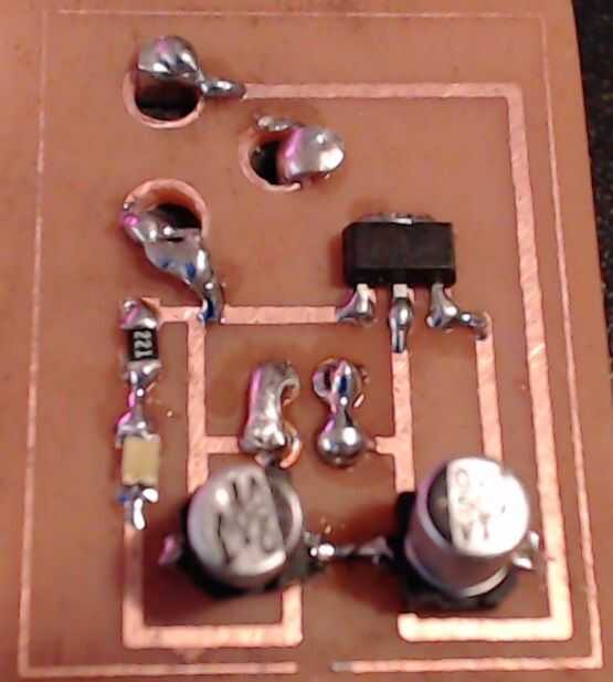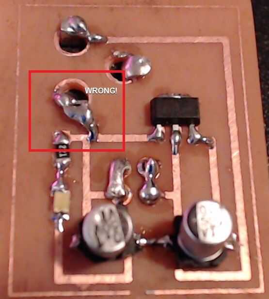 En la primera imagen, tengo el VCC de la toma de conexión en el lado de salida de la LM78L05, que es un poco estúpido. Después de soldar la Junta le dio cierta energía y notado que registré 9 voltios por todas partes (bueno en los rieles de positivo, de todos modos). Así que pensé que había hecho un error.