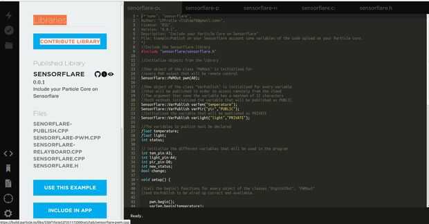 • Será utilizada incluir nuestro proyecto de partículas fundamentales en la plataforma Sensorflare la biblioteca "sensorflare.h". Un manual de cómo utilizar la biblioteca puede encontrarse en GitHub.