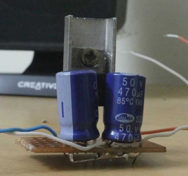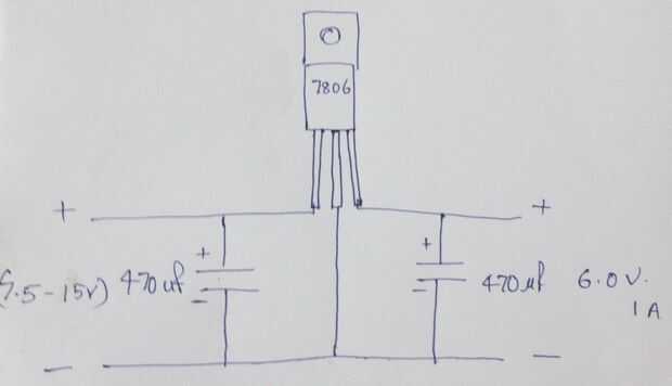 circuito de regulador de voltios de 5v que puede hacerse de sólo tres componentes, su forma simple, barata y fácil para obtener una corriente de hasta 1A y una tensión de más de 5v puede ser regulado sólo por este circuito, este circuito puede ser ut