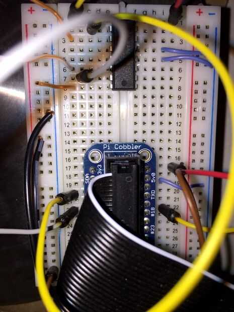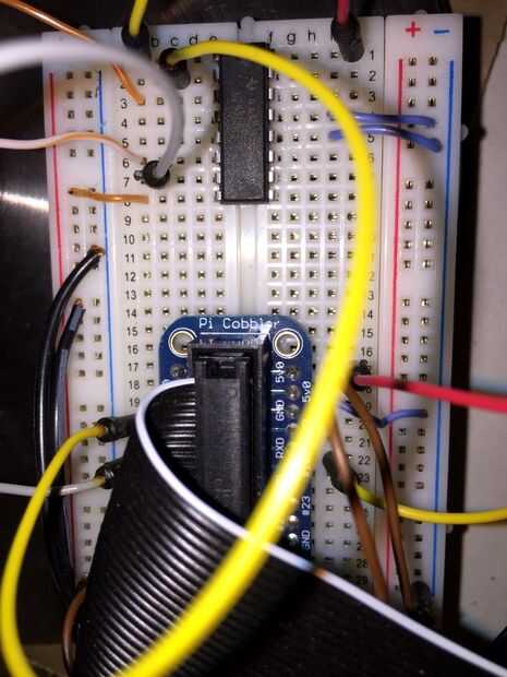 Usando los cables de puente, seguir el esquema anterior para conectar tu motor, fuente de alimentación, chip L293D para el Pi. Se trata de un tutorial de Adafruit, la única modificación es que estamos utilizando una fuente de alimentación de 12V 1A en lugar de un paquete de baterías.