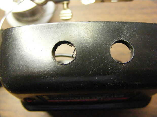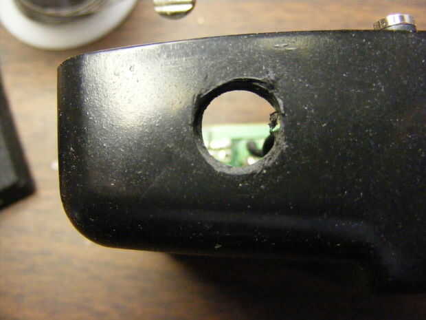 Perfore un agujero de 3/8 de pulgada para montar el pulsador y dos agujeros de 5/16 de pulgada para los mensajes de la carpeta. Instalados los puestos de binder y el pulsador en el cuerpo del cargador.