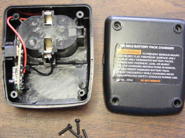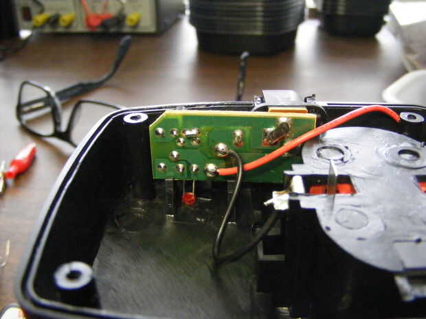 Desmontar el cargador y mapa de ubicación de componentes claves: pulsador, jack de 3,5 mm, LED y la resistencia y la carpeta de mensajes. Es importante asegurarse de que la colocación de componentes no interfiera con la operación del cargador normal. Por ejemplo, me aseguré que ninguno de los componentes se sentirá orgulloso de la placa, porque durante la carga normal de la batería, el cargador se sienta en su cubierta.