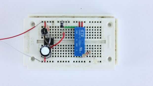 Cualquier proyecto de electrónica, es una buena idea al prototipo del circuito en un protoboard antes de soldar juntos. Esto dará una oportunidad de encontrar algún problema y hacer los ajustes necesarios. Para probar, conecté un LED a la salida del relé. Esto hace fácil ver cuando el relé estaba en.