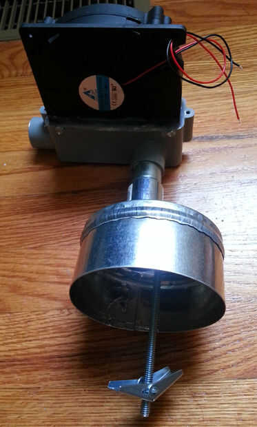 Usando un taladro de broca metal un agujero en el extremo de conducto tapa offset del centro para el perno de carruaje. Este tornillo pasará por un sistema de ventilación en la parte inferior del fumador para sostener el ventilador en su lugar. Luego perfore un agujero para el tubo de rosca de 3/4 de pulgada (celebrado en el interior de la tapa del extremo del conducto con una tuerca). Coloque una tira de espuma de poliestireno en la parte inferior de la 3/4 conducto de vivienda por lo que el ventilador no está al ras con la parte inferior de la carcasa. Coloque el ventilador en la caja de conducto de 3/4" y sello con silicona.