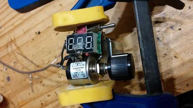 Si hace más fácil, algún alambre de la soldadura (ver el alambre de plata) al terminal de tierra del potenciómetro y el otro cable (cobre) a la salida del regulador de voltaje y soldar el cable a los cocodrilos (puede que necesite rehacer el encogimiento del calor si ya hiciste eso antes.