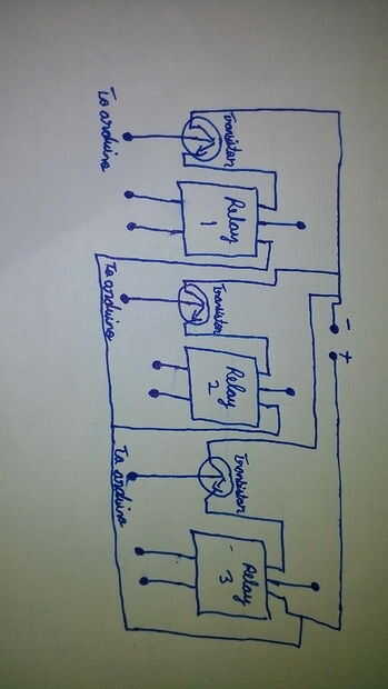 El módulo de relé consta de 3 relés (que pueden ampliarse hasta 6 como Arduino Uno tiene 6 pines pmw) que se conectan a un transistor cuya base pin va al diagrama del circuito de Arduino.The y rastros en las imágenes. (Nota: los rastros en el diagrama son diferentes de los rastros de PCB en algunos puntos debido a la falta de espacio.). Los pines marcados como Co en el PCB son para conectarse a los pines analógicos en Arduino