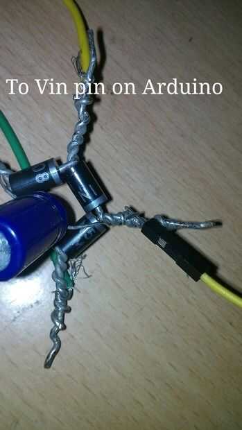 Conecte el terminal positivo a la fuente de alimentación (puente de diodos) [se muestra en la imagen], al Arduino Vin pin y el negativo a GND....