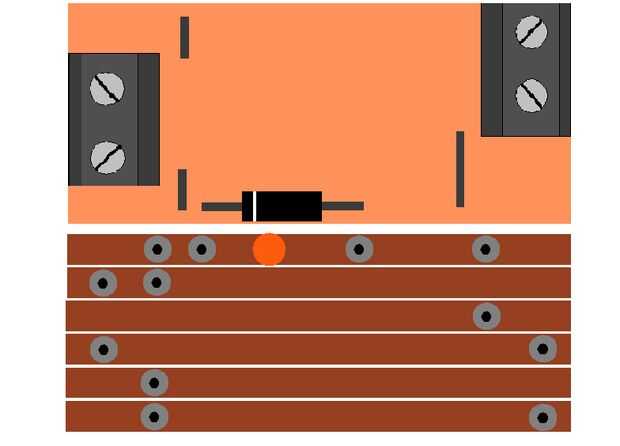 El diodo en la soldadura sobre la ruptura en las pistas.