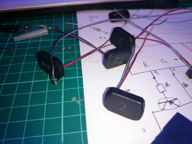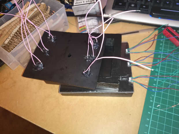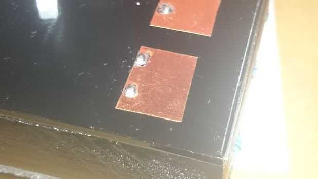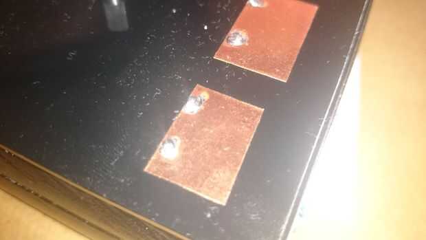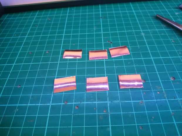 Fueron hechos simplemente cortando más o menos trozos cuadrados de cinta de cobre, pegándolas hacia abajo después de la alineación y luego soldar dos resistencias a ellos una resistencia es un envío la otra es una recepción y Arduino puede detectar cambios en este, por lo tanto lo que nos permite usar botones.