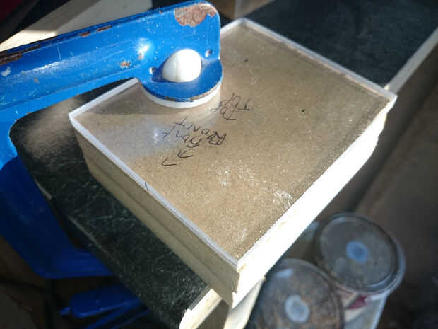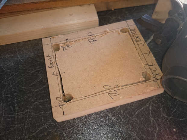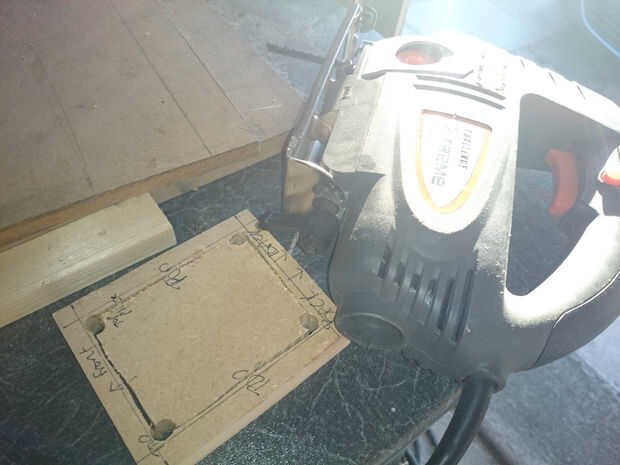 Una vez tengas estas tres piezas de corte, hasta y hacer ajustes usando una lijadora, si es necesario. Me tomó un poco de lija para que queden alineados ya que mi alineación de jigsaw está desactivada. Una vez que se alinean desea etiquetar el tapa, frente, parte posterior, inferior y lados para saber la orientación exacta de las piezas. El siguiente paso es recortar un rectángulo en la tapa MDF dejando unos 10 mm de espacio alrededor de toda la pieza MDF (véase los cuadros). Se trata de que el Arduino y otros componentes se ajusta a.