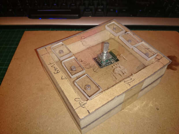 Después de esto usted quiere medir la parte donde se coloca el conector USB en la parte inferior parte MDF y luego perfore un agujero a través de lo suficientemente grande para permitir que un cable USB para pasar. Esto es para que puedan alcanzar el cable USB en la pieza superior del MDF. (Compruebe las conexiones en las fotos!)