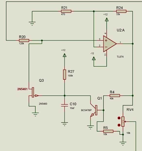 Necesita un OP-amp(U2:A), utilicé un Tl074, que necesita + 12V, GND y - 12V, pero usted puede usar cualquier OP-amp.