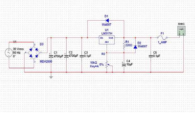 Napomena: Simulacija je rađena bez transformatora, stvarnom u slučaju je del transformador obavezan osim ako nemate izvor izmjenicnog napona 30V!