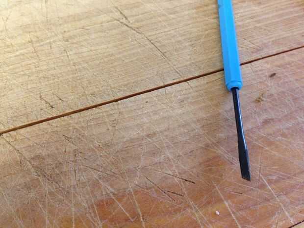 La madera puede han ampliado de la humedad cerca de las grietas. Use un plano o un cuchillo para aplanar cualquier áreas elevadas.