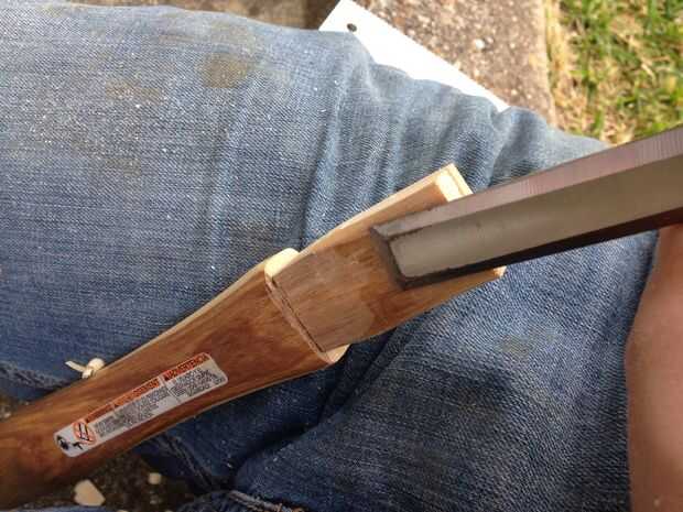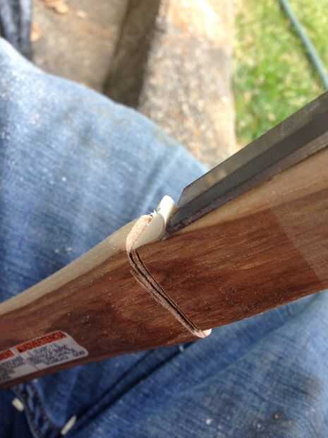 Es hora de montar el nuevo asa a la cabeza de martillo.