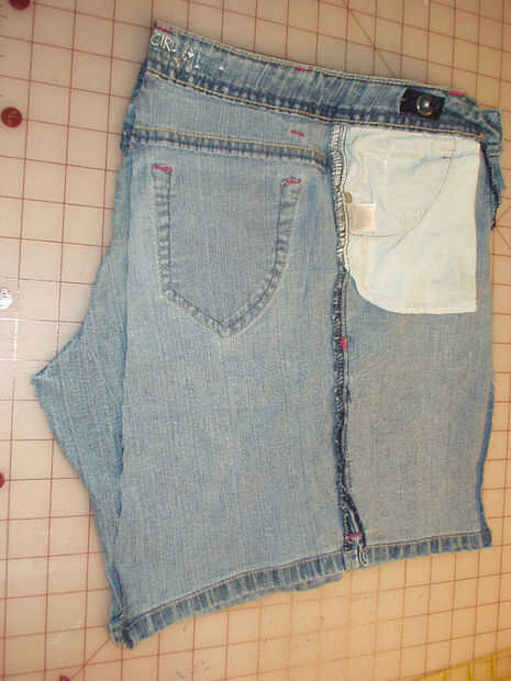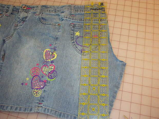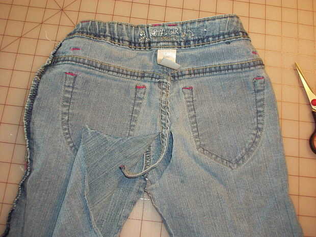 Corte en la costura por el corte a lo largo de la costura en ambos lados. Que desea quitar la costura entera ya que es muy voluminoso y no quieres tener que coser sobre él más adelante. Decidir qué lado de los pantalones vaqueros que desea ser el principal. En este par, estoy usando la parte frontal como la parte delantera de la falda, pero algunos pantalones vaqueros tienen más adorno en la parte posterior. Si el tuyo tiene bolsillos traseros de lujo, hacen la parte delantera de la plataforma. De todos modos, cortar la costura de la pretina del lado que hayas elegido a sacrificar. Coloque los pantalones vaqueros a plana y utilice una regla para marcar y cortar un lado recto desde el borde hasta la cintura. Tomar la pieza que cortó y colóquelo sobre el otro lado de los pantalones vaqueros por lo que se puede cortar el otro lado el mismo.