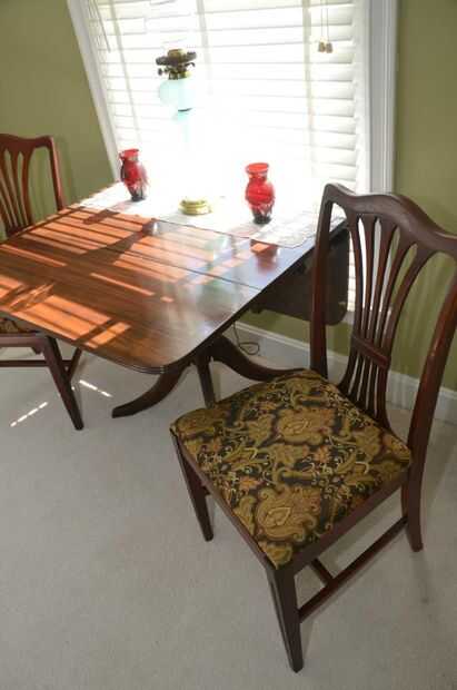 Básicamente es un 1900 abatible que algún idiota pone una capa de poli en! de cualquier manera tienes la tabla en el barato y necesario 2 sillas. Yo estaba en una tienda de consignación y bajé y tuvieron 2 Chippendale de $15 una pieza. Que clase de flojo y necesitan retapizado pero pensé que podría fijar para arriba y en $15 pieza necesitaba sillas.