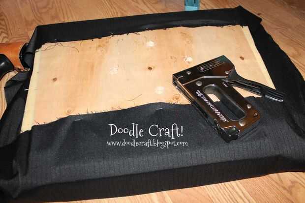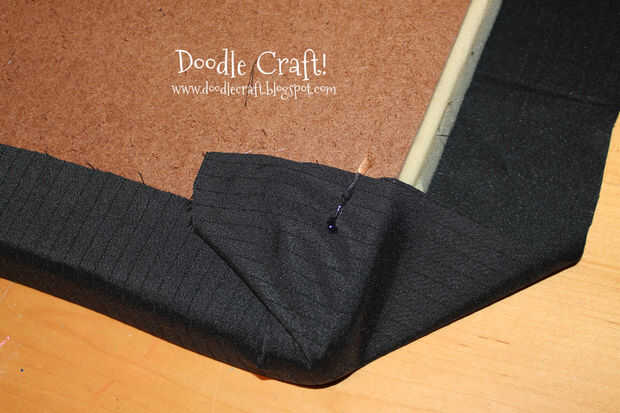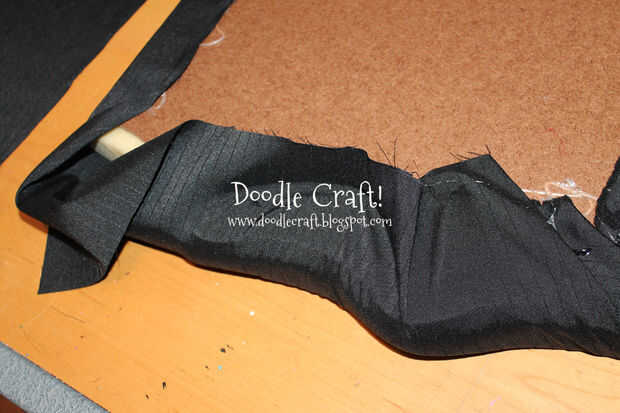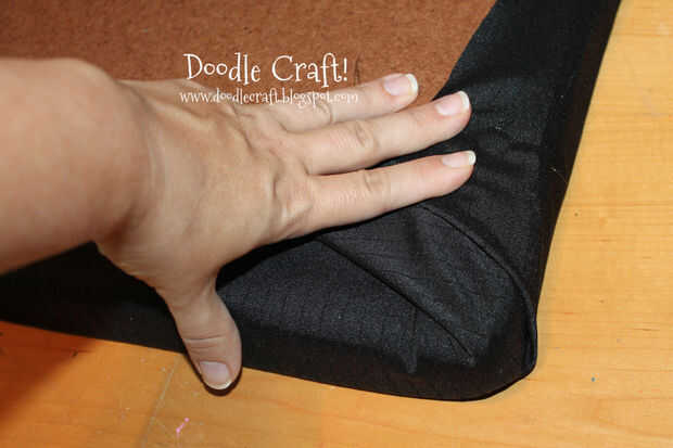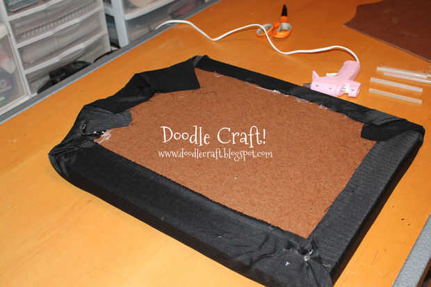 He utilizado pegamento caliente y envuelto firmemente la tela alrededor del tablero.
