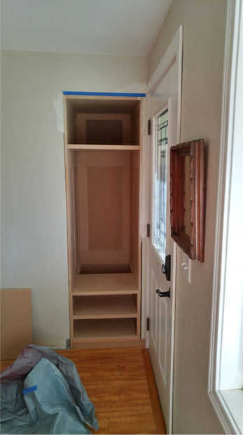 Armario con oculta habitación seguraMi cliente tenía un tamaño modesto walkin closet con forma de L. Tenían techos muy altos. Tenía el tradicional solo estante y barra. Quería remodelar el espacio para agregar más espacio de almacenamiento. Hubo un r
