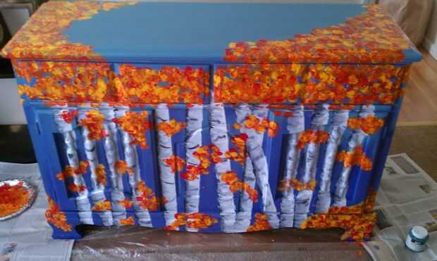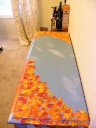 También descubrí que la parte superior no cura perfectamente - objetos dejados en él por un tiempo a veces un poco atascado. Esto puede suceder a veces con pinturas de látex y puede ser causada por varios factores, incluyendo la humedad y temperatura ambiental. Estaba cuidado de seguir la temperatura recomendada y la humedad durante el trabajo, pero por supuesto, había llovido varias veces mientras que la pieza fue secado, y ese punto de humedad podría haber evitado de curado totalmente. La solución a esto es solo una bonita capa de un poliuretano. En este caso, sólo la parte superior necesita, porque la pieza no Haz manejada en ningún otro lugar y no tenemos niños o mascotas para tensionar el cuerpo. Si lo hace, puede cubrir todo.