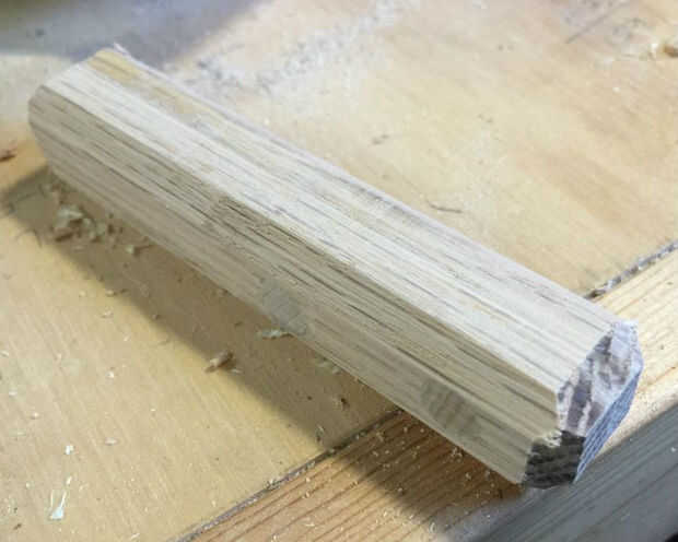 Usé un poco biselado en mi router para recortar todos los bordes cuadrados para octágonos. Luego añadí un gloop grande de epoxy a la manija y el eje metálico, deja que se seque y acabado con poliuretano. Mi destornillador está ahora mejor que nuevo.